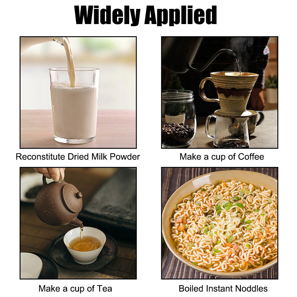 Made of food grade 304 stainless and PP material, safe to drink the boiled water.