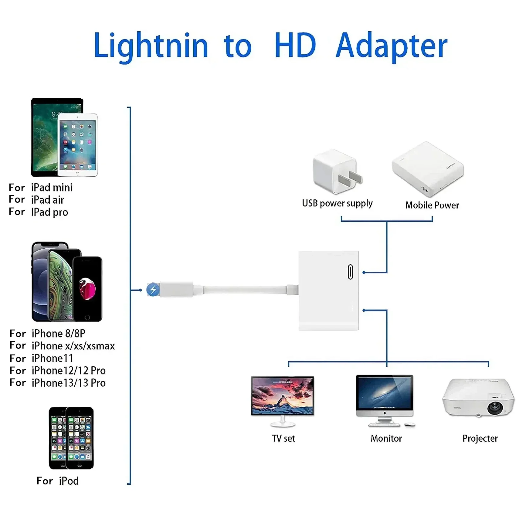 [Extensive compatibility] This HDMI-compatible adapter compatibility with iPhone, Such as iPhone 12, 11, Pro ,Xs/max,8/8 plus, iPad Touch, Pad, Pad Mini/Air/Pro, compatible with version iOS 9 after. (Not work with latest iPad Pro with USB-C port)